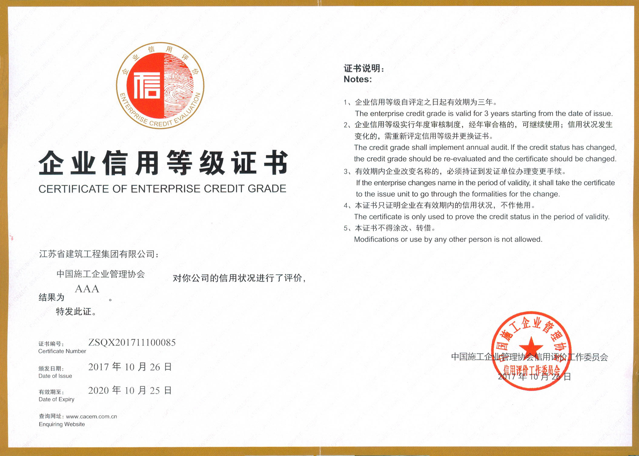 全國企業信用評價AAA級信用企...