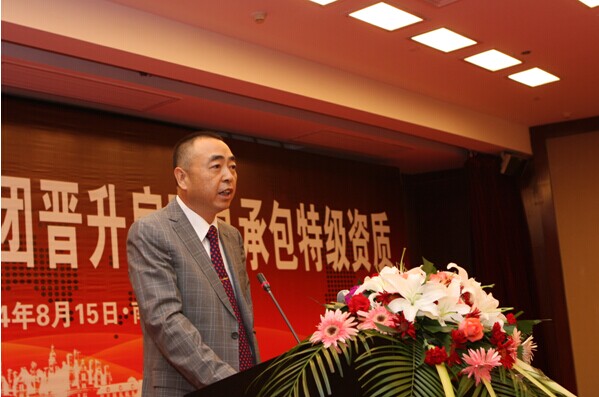 集團公司董事長陳正華發表了熱情洋溢的致辭。他在講話中對為申特工作付出艱辛努力的集團廣大員工和所有關心和支持江蘇省建申特工作的各級領導表示敬意和感謝。陳正華說,獲得房建總承包特級資質是數代省建人夢寐以求的目標,是江蘇省建改制以來最重要的戰略任務之一。七年前我們與特級資質失之交臂,七年來我們對特級資質的夢想和追求從來沒有松懈過。為了實現這一目標,我們成立了以仇天青總裁為組長的特級資質申報領導小組,吃透新標準的精神,制定了詳細的房建特級資質升級的申報方案,從“企業資信能力、專業技術人員、科技進步水平、信息化管理、代表工程業績”等方面,對照標準要求,對集團公司的情況進行全盤梳理,逐一落實。在經過長達七年的申報過程中,集團各單位、各部門通力合作、不懈努力,克服了申報過程中的諸多困難,使江蘇省建集團全面達到了《特級資質新標準》規定的各項指標,順利地通過了資質審查核準過程中的業績核查、資料審查、實地核查等全部環節,集團成為《特級資質新標準》頒布后七年來江蘇省第一家申特成功的企業。