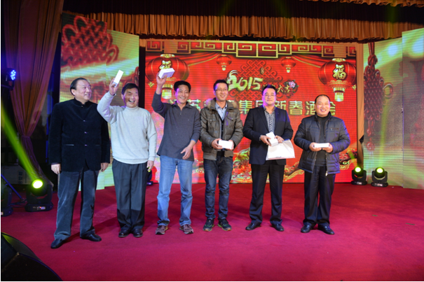 酒會(huì)期間除了精彩的節(jié)目表演,還進(jìn)行了現(xiàn)場(chǎng)抽獎(jiǎng)活動(dòng),IPHONE6手機(jī)、高檔羊毛被等豐富的獎(jiǎng)品讓全場(chǎng)歡呼不斷。晚會(huì)在舞蹈《火火的中國》落下帷幕。集團(tuán)領(lǐng)導(dǎo)上臺(tái)與演職人員合影留念,并勉勵(lì)大家今后創(chuàng)作出更多貼近工作、貼近基層的優(yōu)秀作品,鼓舞省建人同心協(xié)力,為省建發(fā)展作出更大貢獻(xiàn)。
