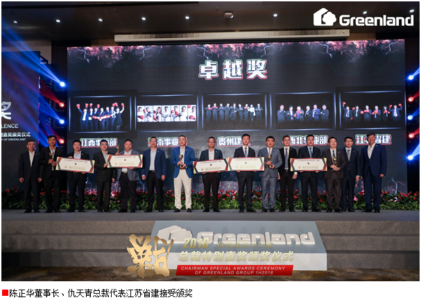 在半年度頒獎典禮上,江蘇省建憑借上半年優秀的業績表現獲得綠地集團表彰,再次斬獲綠地集團總裁特別嘉獎最高獎項—“卓越獎”榮譽,經營團隊獲得現金重獎。